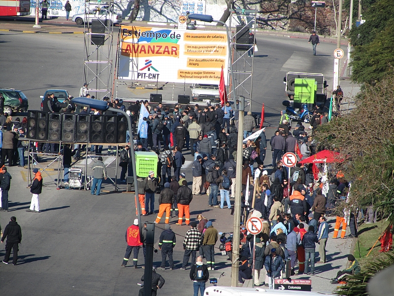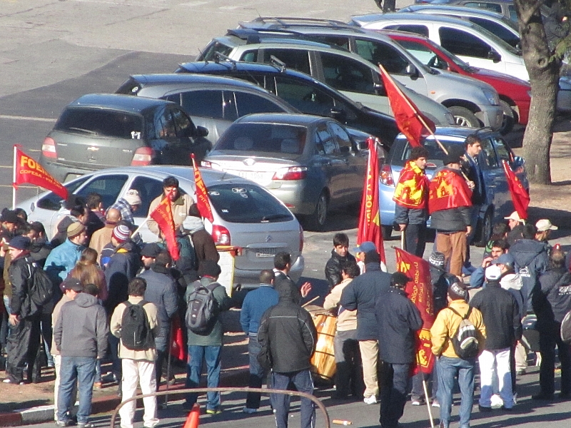 На этой неделе была забастовка водителей автобусов. Порвали два баяна. Если раньше у меня со словом «Забастовка» были ассоциации (по некоторой части взрощенные еще в детстве на уроках политинформатики) — «баррикады, ОМОН, коктейль молотова» и т.п. То сейчас это — «Праздник, барабаны, хорошее настроение». Дети в этот день не учатся. Участники забастовки и все сочувствующие кучкуются около законодательного дворца. Выдвигают требования президенту по матюгальнику. Жарят мясо, пьют матэ и поют интернационал. И ни одной суке не придет в голову разогнать выражающий свои требования народ.